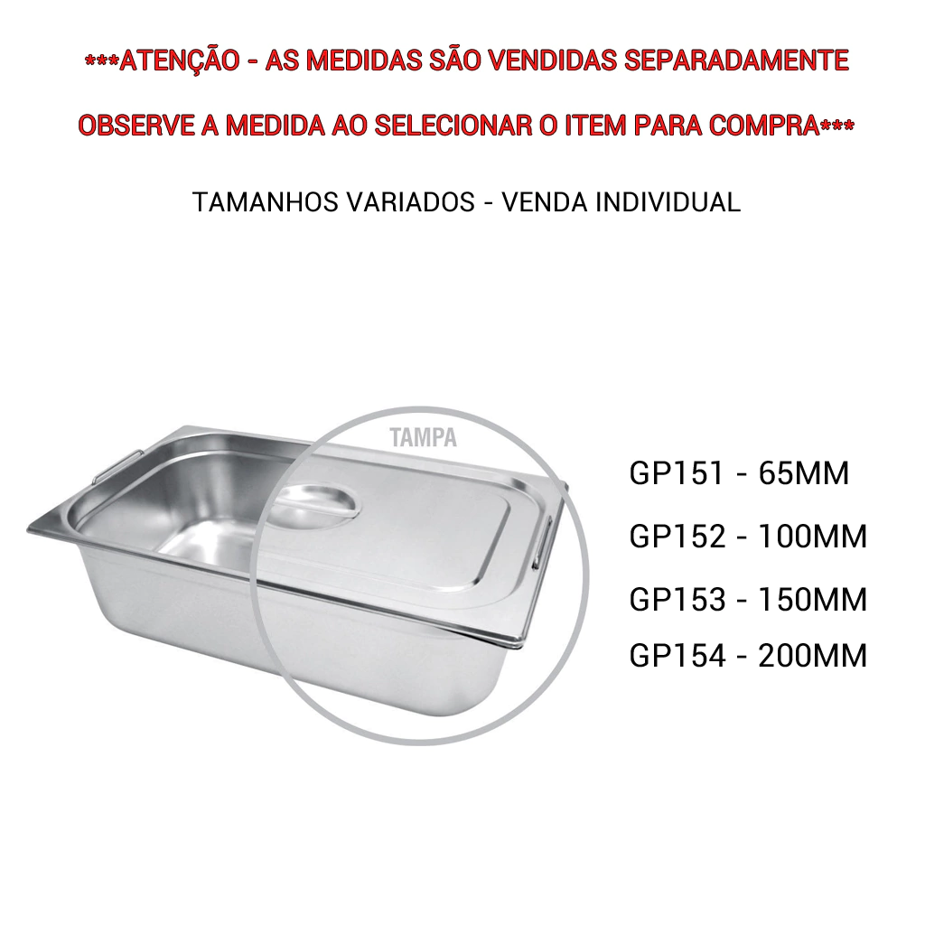 Conteúdo da embalagem: 1 Cuba GN 1/1 em Inox com Alça Gp Inox